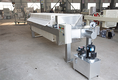 1. 壓緊壓濾機。 循環(huán)開始的步就是壓緊壓濾機。壓濾機的濾板是可移動的,通過油缸活塞桿的推動,壓濾機濾板逐一靠緊排列。油缸壓緊壓力由液壓系統(tǒng)提供和控制,在掉壓時可自動補壓(稱為自動保壓壓濾機),保證油缸的壓緊力。油缸壓緊力是壓濾機重要的參數指標,足夠的壓緊力是保證不漏料、不噴漿的前提,是壓濾機脫水性能的基礎?! ?.....